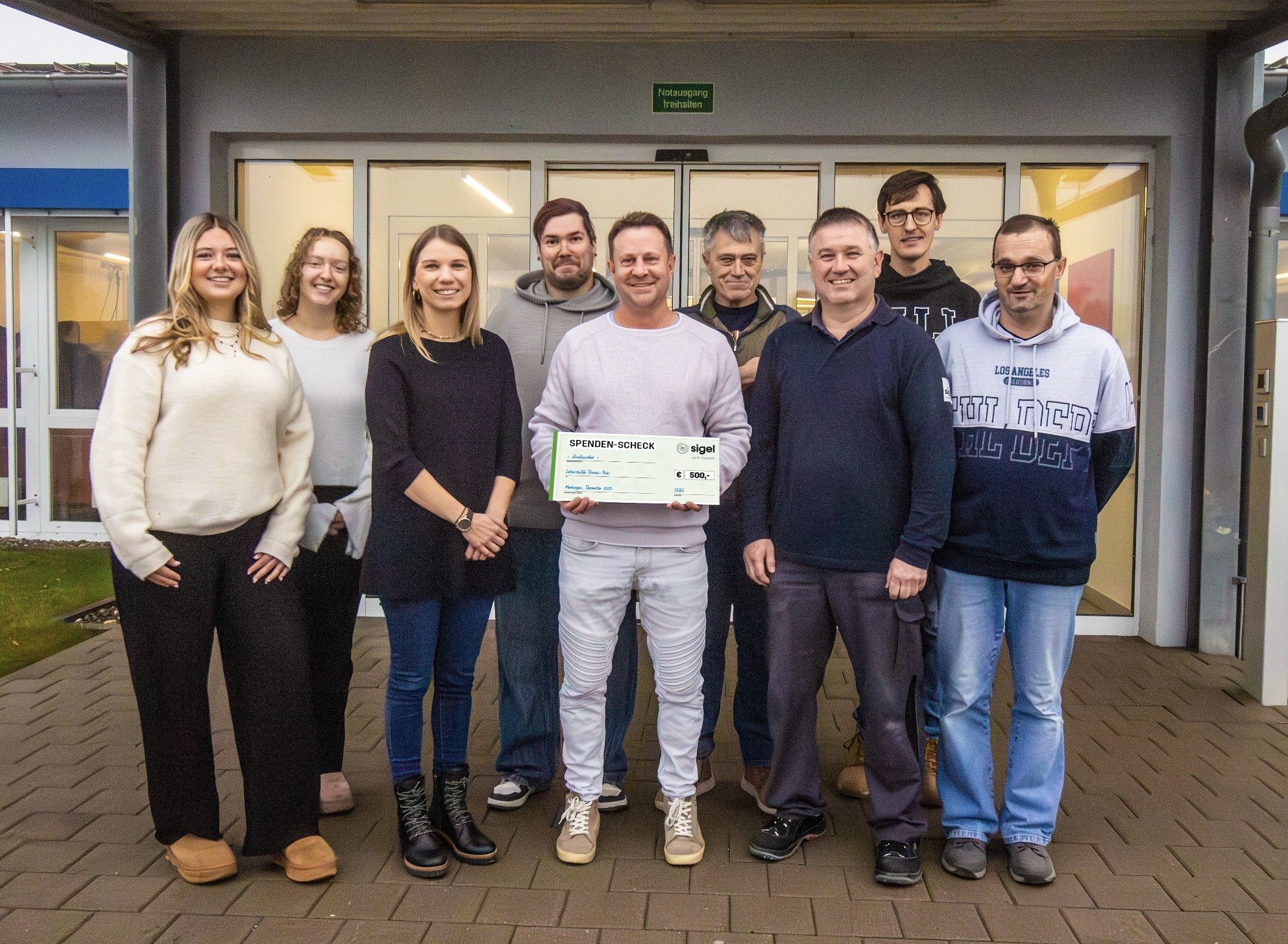 Sigel hat der Lebenshilfe Donau-Ries e. V. eine Spende in Höhe von 500 Euro übergeben. Begünstigt wurde konkret die Donau-Ries-Werkstätten GmbH am Standort Asbach-Bäumenheim. Die Summe ist aus dem Verkauf von Weihnachtskarten hervorgegangen, die im Rahmen der bundesweiten Aktion Schichtwechsel gestaltet wurden.