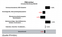 Besonders positiv entwickelten sich Verbrauchsmaterial und EDV-Zubehör. Dieses Segment legte um 3,9 Prozent zu und erreichte ein Umsatzvolumen von 0,5 Milliarden Euro. Rückgänge verzeichneten dagegen Schreibgeräte und Büroplatz-Zubehör, die um 2,2 Prozent auf 1,3 Milliarden Euro nachgaben. Deutlicher fiel der Rückgang bei Bürokommunikations- und Spezialpapieren aus. Hier sank der Umsatz um 4,1 Prozent auf 5,6 Milliarden Euro. Zuwächse meldet hingegen der Bereich Briefumschläge, Geschäftsbücher sowie Ordnungs- und Archivierungslösungen. Diese Sortimente wuchsen um 4,3 Prozent auf 3,6 Milliarden Euro. Kalender sowie Ansicht- und Grußkarten entwickelten sich mit einem leichten Plus von 0,2 Prozent stabil und lagen ebenfalls bei 1,3 Milliarden Euro Umsatz.