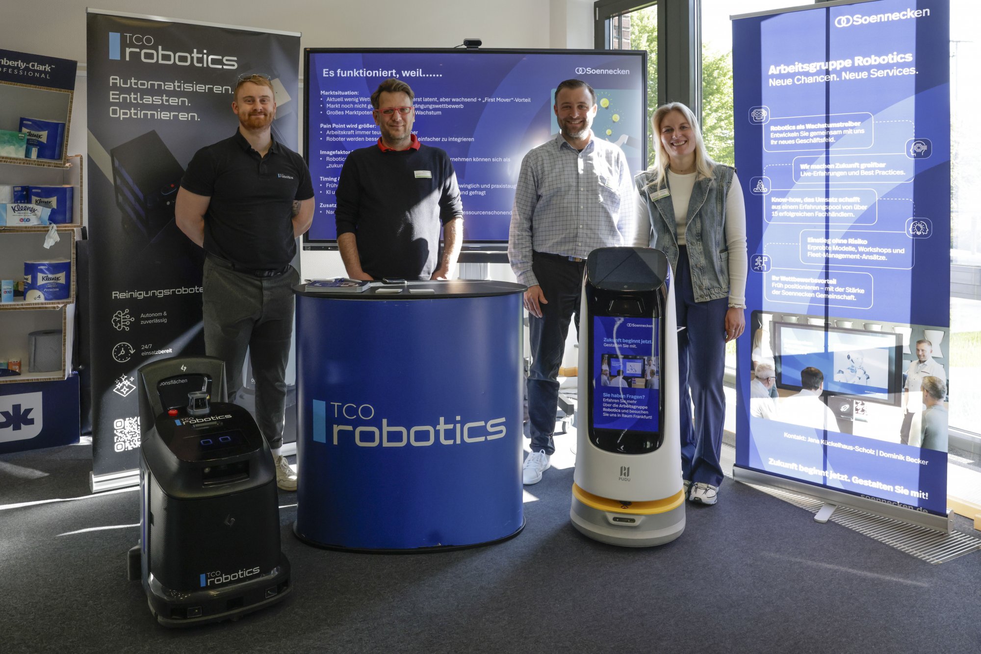 Auffällig war die zunehmende Bedeutung von Sortimenten außerhalb der klassischen PBS-Welt. Anbieter aus den Bereichen Catering, Food, Reinigung, Hygiene, Baumarkt, Garten und Outdoor-Arbeiten waren deutlich stärker vertreten. Auch das Thema Robotik gewann an Sichtbarkeit. Gemeinsam mit TCOrobotics zeigte die Genossenschaft entsprechende Anwendungen für den Handel.