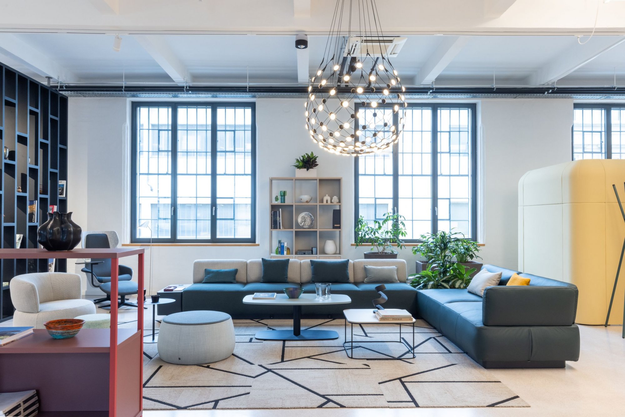 Zusätzliche Tiefe erhält das Konzept durch Lichtinszenierung und begrünte Raumteiler, die Orientierung schaffen und gleichzeitig die wohnliche Anmutung des Showrooms verstärken. Gerade für New Work Styles-Leser ist dieser Standort ein anschauliches Beispiel dafür, wie Hospitality, Arbeitsplatzqualität und räumliche Dramaturgie zusammenfinden.